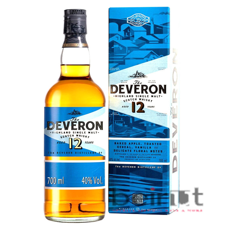 The Deveron is a line of single malts produced at the Macduff distillery in Spain. The name “Macduff” appears on independent bottelings, while variations on “Deveron” are used for official releases. Why? I’m too apathetic about this malt to find out. Probably it doesn’t matter. At some point in the hazy last few years the owners of Macduff distillery (John Dewar & Co. which is in turn owned by Bacardi) rebranded the official line from “Glen Deveron” to “The Deveron” and relaunched a core range at ages 10, 12, 18, and mumble mumble.